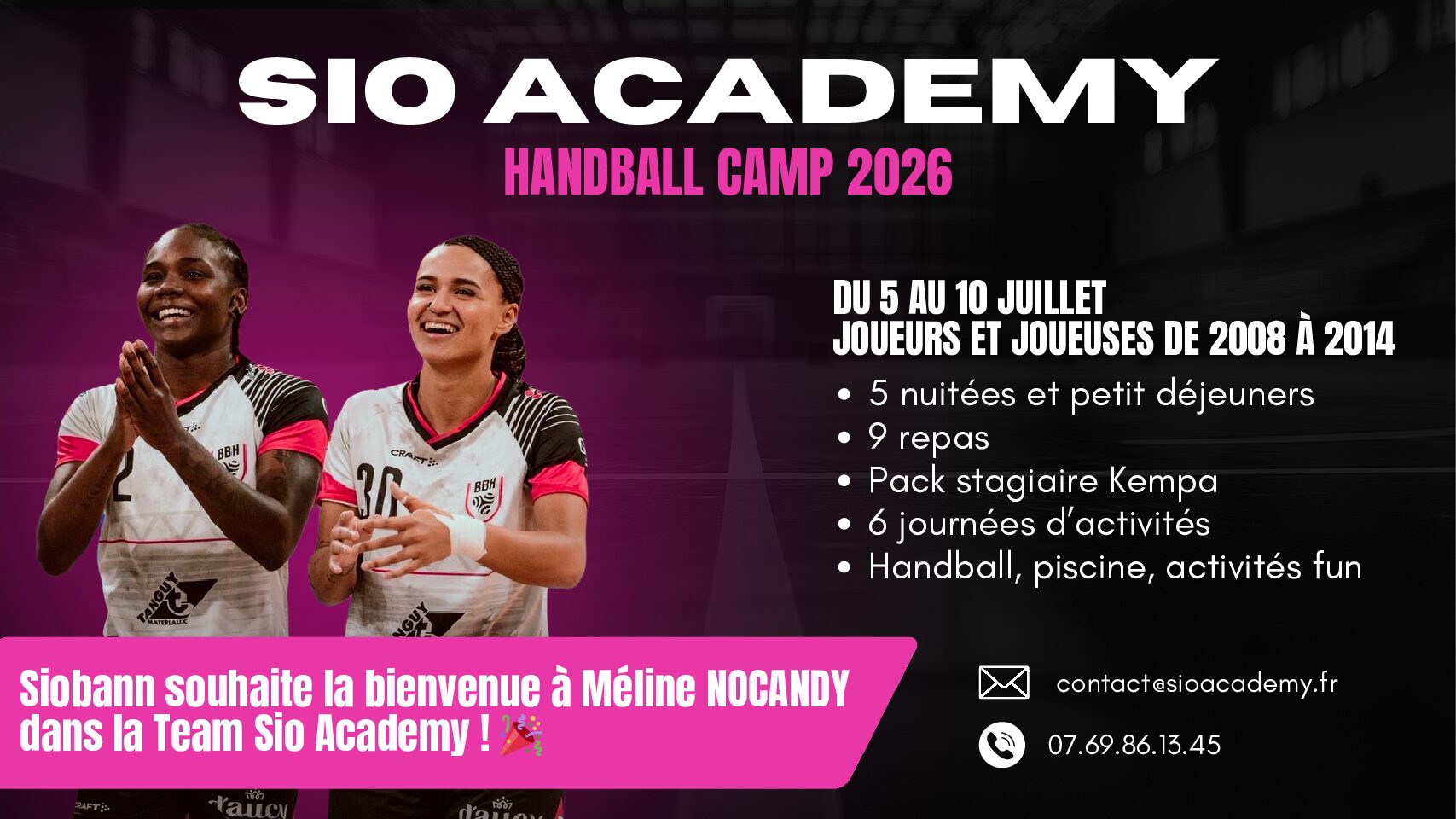 S’inscrire au stage de la Sio Academy, c’est vivre une expérience inoubliable dans un cadre stimulant et convivial. En plus de progresser sur le plan sportif, tu développeras des valeurs essentielles comme l’esprit d’équipe, la persévérance et le dépassement de soi. C’est une chance unique de côtoyer des entraineurs professionnels, des joueuses internationales (équipes de France jeunes ou France A) et d’enrichir tes compétences et de partager ta passion avec d’autres joueurs motivés. Rejoins nous pour vivre une aventure exceptionnelle et franchir un nouveau cap dans ton parcours de handballeur et handballeuse.